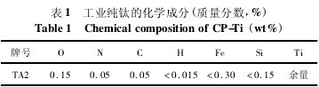 試驗材料選取厚度為10mm的退火態(tài)工業(yè)純鈦(cp-ti)板材,其化學成分如表1所示。將板材切割成100mm×100mm×10mm試樣,在smat處理前對其進行除銹、去油、磨邊等處理。