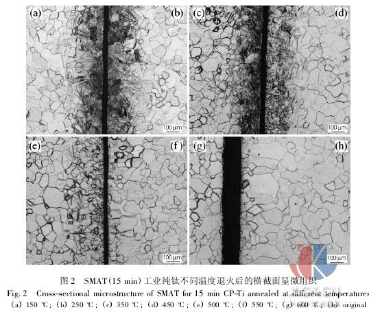 3) 表面納米化工業(yè)純鈦經(jīng)低于350℃的退火后,可獲得較高硬度和較好耐腐蝕性能的表面層。