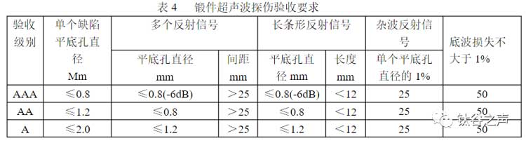 3.5.1 超聲波探傷檢驗分AAA、AA和A三個級別,檢驗結果應符合表4的規(guī)定。