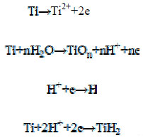 一般而言,高強材料的應力腐蝕開裂機理可分為陽極溶解型和氫致開裂型兩類。鈦合金的深海應力腐蝕開裂也不外于此。陽極溶解機理認為,應力腐蝕裂紋的形核和擴展受到陽極的持續溶解能力的影響。但時,關于陽極金屬如何溶解以及應力的影響,存在著不同的看法。一些學者認為應力作用下的塑性變形會導致局部鈍化膜破裂,暴露的新鮮金屬會瞬間溶解,然后再次鈍化,在應力作用下鈍化膜再次破裂,該過程往復,最終導致應力腐蝕裂紋的形核或者擴展。而另一部分學者認為,選擇性溶解產生點蝕,點蝕誘發裂紋形核。裂紋的擴展可以視為一種溶解導致的氧化物形成和隨后再重組的腐蝕過程。在反應歷程上表現為,Ti 的陽極溶解,H 的析出和Ti 的氫化物的形成,其反應式為: