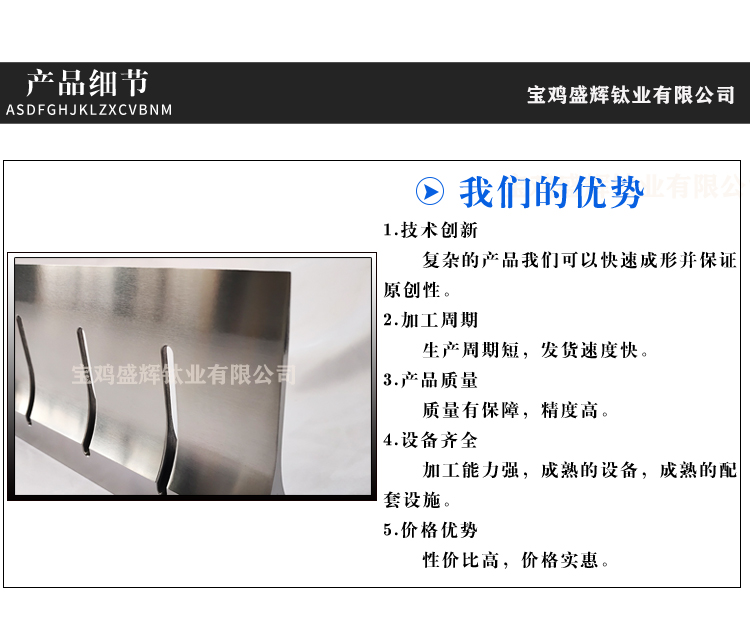 寶雞盛輝鈦業有限公司是一家主要從事鈦及鈦合金棒,鈦環,鈦法蘭及鈦合金板材的高新技術企業,公司提供鈦環,鈦合金棒批發,鈦環的生產工藝服務,以人為本,質量取勝為宗旨:18791863990,18740375975