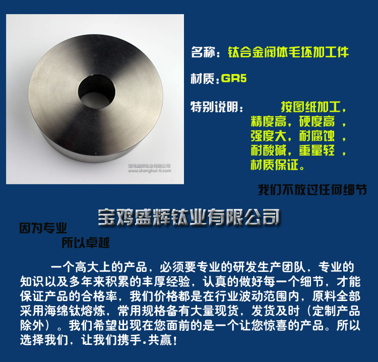 寶雞盛輝鈦業(yè)有限公司是一家主要從事鈦及鈦合金棒,鈦環(huán),鈦法蘭及鈦合金板材的高新技術(shù)企業(yè),公司提供鈦環(huán),鈦合金棒批發(fā),鈦環(huán)的生產(chǎn)工藝服務(wù),以人為本,質(zhì)量取勝為宗旨:18791863990,18740375975