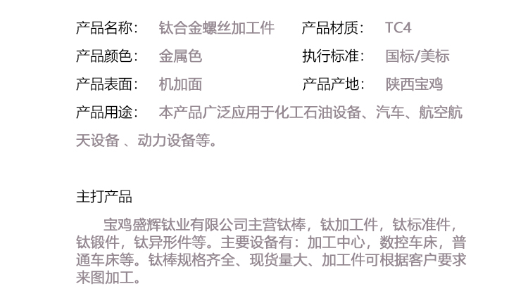 寶雞盛輝鈦業(yè)有限公司主營鈦棒,鈦加工件,鈦標準件,鈦鍛件,鈦異