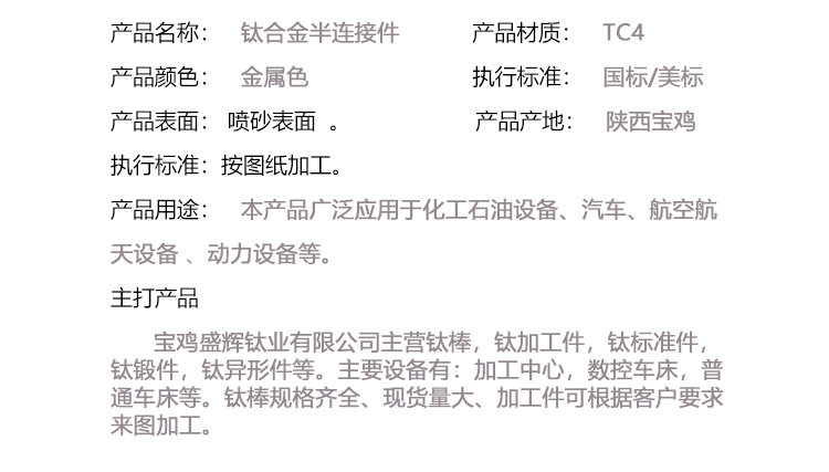 寶雞盛輝鈦業有限公司主營鈦棒,鈦加工件,鈦標準件,鈦鍛件,鈦異