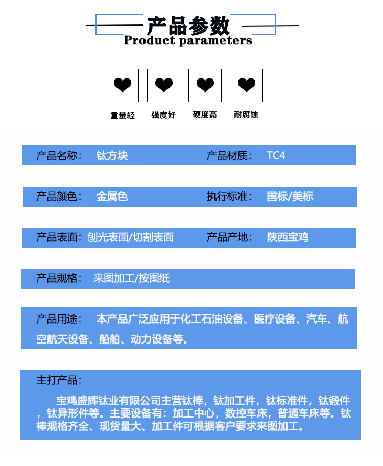 寶雞盛輝鈦業有限公司是一家主要從事鈦及鈦合金棒,鈦環,鈦法蘭及鈦合金板材的高新技術企業,公司提供鈦環,鈦合金棒批發,鈦環的生產工藝服務,以人為本,質量取勝為宗旨:18791863990,18740375975
