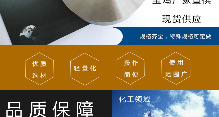 盛輝鈦業(yè)鈦產(chǎn)品采用優(yōu)質(zhì)的海綿鈦冶煉加工而成,本廠擁有數(shù)臺美國全進口四軸哈斯、多臺數(shù)控車床以及普通車床、鋸床、焊接平臺等一系列先進的設(shè)備,完善的配套設(shè)施,滿足不同產(chǎn)品的生產(chǎn)技術(shù)要求。產(chǎn)品無論是加工、操作、還是裝配、測試,每一道工序都實施嚴格的質(zhì)量管理,并符合環(huán)保、節(jié)能、節(jié)約資源的國家戰(zhàn)略,用料絕不含糊,提供高品質(zhì)的鈦材以及一流的售后服務(wù)。