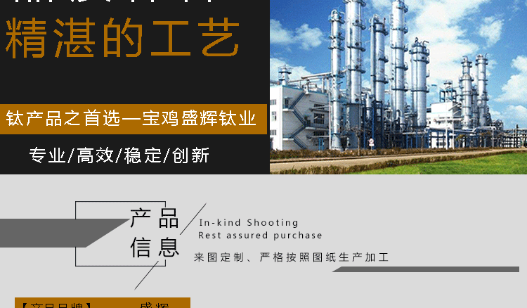 從細節(jié)出發(fā),站在專業(yè)的角度,始終如一堅守品質(zhì)的最終使用價值,產(chǎn)品和服務(wù)同時送達是盛輝鈦業(yè)對客戶的承諾。寶雞盛輝,將以不變的摯誠,用心聆聽,貼心關(guān)懷,以至全至尊的服務(wù),與新老客戶攜手共贏!