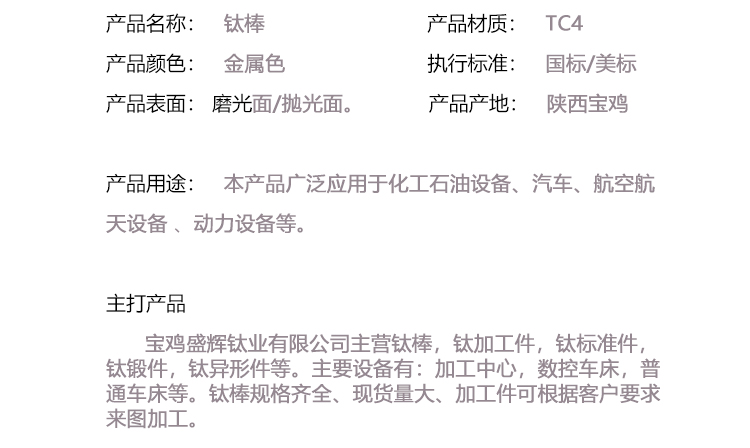 寶雞盛輝鈦業(yè)有限公司主營鈦棒,鈦加工件,鈦標(biāo)準(zhǔn)件,鈦鍛件,鈦異