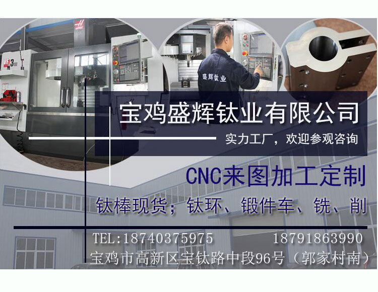 寶雞盛輝鈦業(yè)有限公司是一家主要從事鈦及鈦合金棒,鈦環(huán),鈦法蘭及鈦合金板材的高新技術(shù)企業(yè),公司提供鈦環(huán),鈦合金棒批發(fā),鈦環(huán)的生產(chǎn)工藝服務(wù),以人為本,質(zhì)量取勝為宗旨:18791863990,18740375975