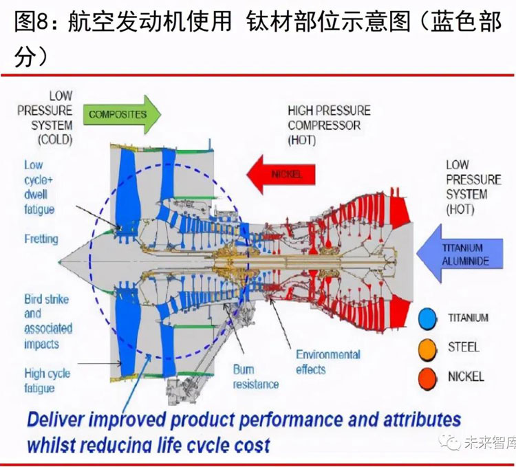 4)符合高抗蝕性和長壽命的要求:鈦合金具有較高的疲勞壽命和優良的耐腐蝕性 能,可以提高結構的抗腐蝕能力和壽命,滿足先進飛機、發動機高可靠性和長壽命的要求。