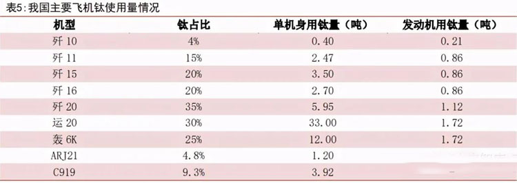 4 我國國產大飛機和軍機升級換代將帶來航空鈦材長期需求
